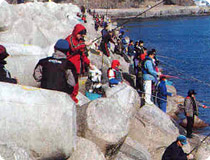 地境里釣り場 位置 : 松羅面地境里 魚種 : クロダイ、メジナ、クロソイ、サバ、サヨリ お問い合わせ : 地境里漁村契 +82-054-262-2257 交通案内 総合バスターミナルから盈徳・蔚珍行きの市外バスを利用(45分) 市内から盈徳方面国道7号線を利用。清河十字路で右折し、月浦海水浴場を経由して6km(盈徳方面21km地点)