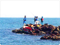 二加里釣り場 位置 : 松羅面地境里 魚種 : クロダイ、メジナ、クロソイ、サバ、サヨリ お問い合わせ : 地境里漁村契 +82-54-262-2257 交通案内 総合バスターミナルから盈徳・蔚珍行きの市外バスを利用(45分) 市内から盈徳方面国道7号線を利用。清河十字路で右折し、月浦海水浴場を経由して6km(盈徳方面21km地点)